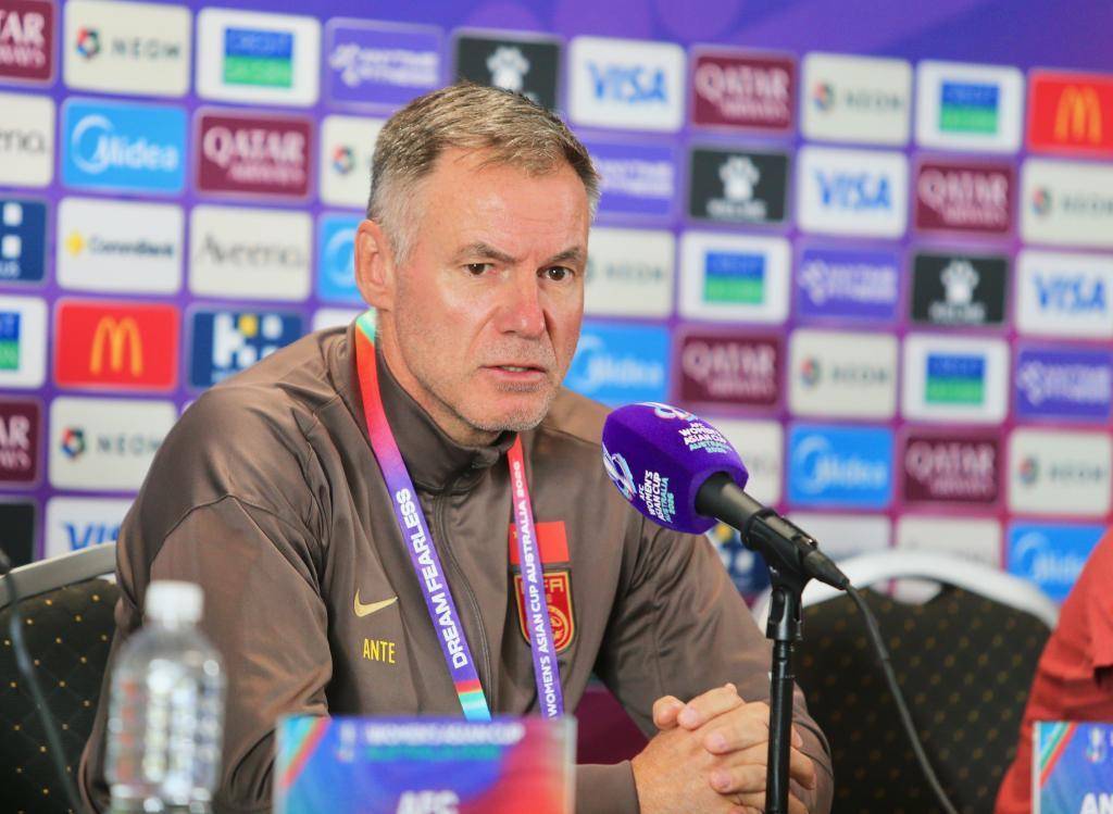 3月13日,中国女足主解说安特·米利西奇在新闻发布会上。新华社发(周丹摄)